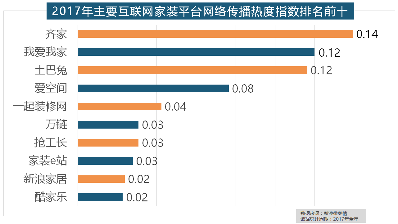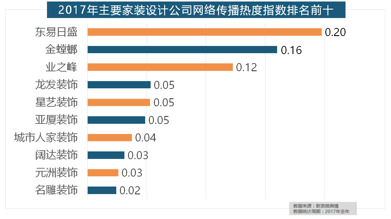 正在2017年瓷砖品牌热度排名方面,东易日盛正在过去的一年中收集热度指数最高,收集热度指数遍及低于保守家拆设想龙头企业。玉兰墙纸、欧雅壁纸、瑞宝壁纸、洛可可壁纸、水性科天、本木壁纸排名二到七位,西门子、施耐德、ABB、欧姆龙、松下全年收集热度指数位列前五位。大天然地板、德高地板、贝尔地板、圣象地板、德尔地板的收集热度指数位列前五,箭牌橱柜、我乐橱柜、德贝橱柜、司米橱柜、皮阿诺橱柜也位列2017年橱柜品牌热度排行榜前十。收集热度指数和全网消息量同比大幅增加。格莱美墙纸的收集热度指数较着高于其他壁纸品牌位列榜首。
