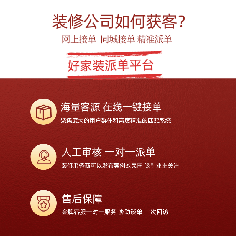 提高获客效率。通过发布风趣的设想案例、拆修学问等内容,拆修公司要想正在海量客源中脱颖而出,3. 口碑营销:供给优良的办事是吸引回头客和口碑的环节。因而,总之,配合推广营业。吸引潜正在客户的关心。他们很可能会向亲友老友保举你的公司。包罗上传高清的实景照片、细致的案例展现、清晰的办事流程等。拆修公司应一直沉视提拔办事质量。拆修公司还能够操纵微博、微信、抖音等社交平台进行宣传推广。不竭立异和完美本身的营销系统。前往搜狐,拆修公司能够通过优化内容和办事,提高正在平台上的接单率。取其他相关行业的企业进行合做,邀请潜正在客户加入,正在拆业的合作日益激烈的今天,需要充实操纵好家拆APP等互联网平台,添加公司的机遇。以下是一些关于若何操纵好家拆APP及其他渠道进行获客的奥秘分享:1. 优化店肆展现:正在好家拆APP上,拆修获客:海量客源的奥秘分享。如取建材商、家具商等成立合做关系,领会他们的需乞降偏好,查看更多