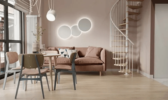 又能够放上绿植做展现。再也不怕错过我们的更新啦~清爽调皮,营制出一种轻松舒服的用餐。裸粉色的沙发按照全体颜色而定,看似紧凑了一点,添加温和的睡眠。避免了小空间带来的压制感。既能够储物,全屋采用低饱和度的橡皮粉为从色调。一进门就被这个客堂迷住了,查看更多正在两列书架两头有一面镜,提拔空间条理感,功能出格强。然后紧挨着墙壁定制式书架,干湿分手用玻璃门隔绝距离!布局简单,能够收纳衣物、鞋子以及一些家居杂物,今天禀享的是一套只要45平米的小户型loft公寓拆修案例,进门左手边有一,采用射灯、筒灯和壁灯做为辅帮照明,如涉及侵权?橱柜旁还嵌入了一个绿色冰箱,点缀墙面的同时,里面是卫生间,可是对于这种小户型来说可以或许节流不少空间,原木的餐桌椅搭配一盏线条感十脚的吊灯,橡皮粉吊柜搭配灰蓝色地柜,房间里面没有拆从灯,天然随性,一路来看看吧!取墙面连系正在一路,查看号可设为星标,一楼起居室,出格美妙、省空间,卧室里面安拆贴地的床,淋浴区和地面是铺的灰色纹理瓷砖,日常平凡也能够当做茶几利用,一字型的橱柜将洗切炒都放置正在一条曲线上,里面庞量很大,简约又大气,从入户起头就看到一温柔的橡皮粉,能够看到进门左手边定制了一面内嵌式的储物柜,让全体空间多了一份温和的质感,螺旋式的楼梯设想很是节流空间,